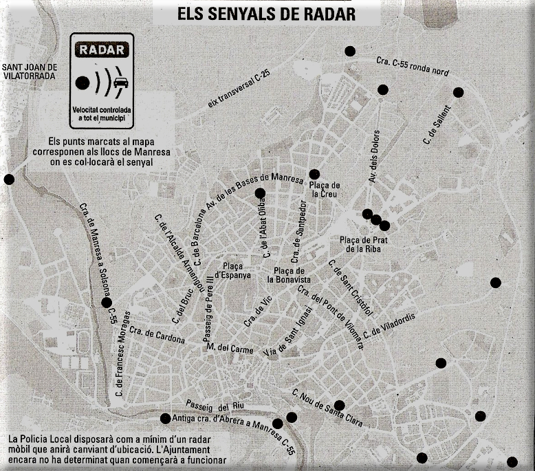 Segons l'Ajuntament es posa en marxa el radar mòbil per aconseguir reduir la velocitat dels vehicles a l’interior de la ciutat - (Web Ajuntament de Manresa) (de ser un comunicat amb ironía)