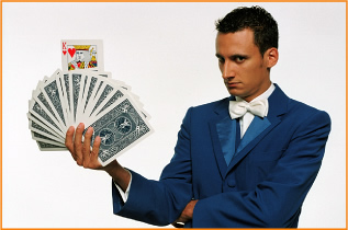 És el número 1. Per la seva capacitat hipnòtica de fer-se seus els espectadors. Pel seu humor. Pel seu discurs. Pel seu domini del llenguatge i per suposat per la seva màgia. Increïble i natural. Podreu comprovar com tan sols amb unes senzilles paraules màgiques és possible fer els jocs de mans més sorprenents. |