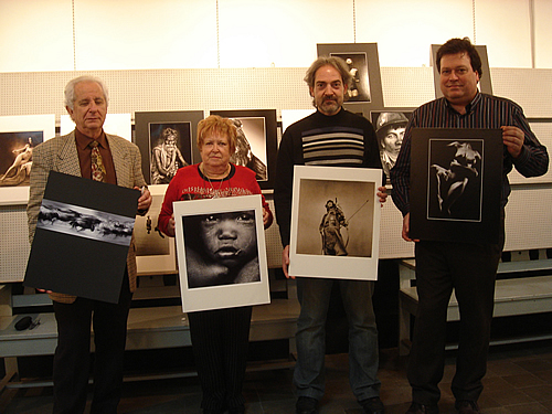 El Jurat i la Carme Serra amb les fotos guanyadores. |